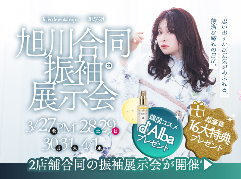 旭川で成人式の振袖レンタル・前撮りをお探しの親御様必見! 三景スタジオ 旭川本店では、4月の金土日祝に「振袖レンタルFAIR」を開催いたします。 最新トレンドの振袖からドレスまで200着以上が勢揃い 。式典当日の「6泊7日」長期レンタルや、写真だけの成人式プランなど、お嬢様にぴったりのスタイルをご提案します。