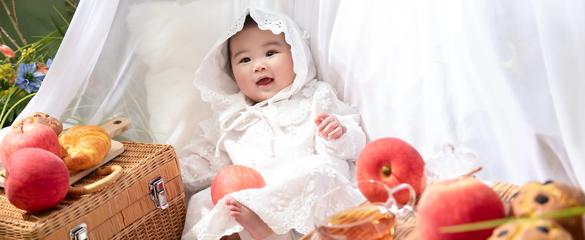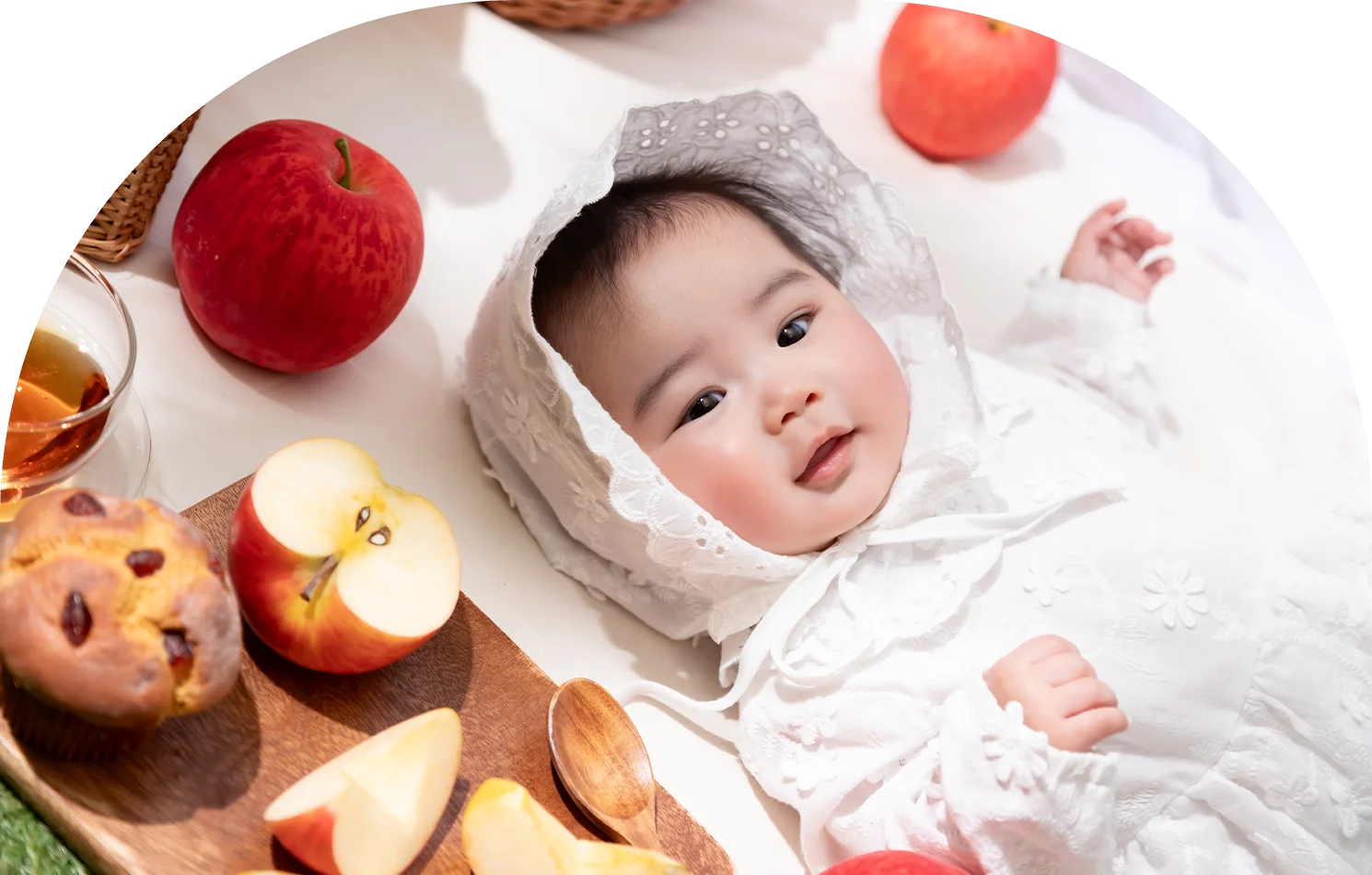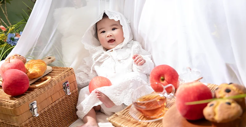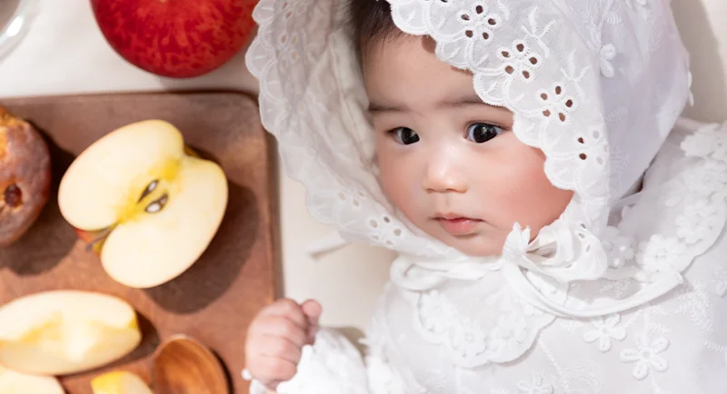 お外でぽかぽか、りんごといっしょ