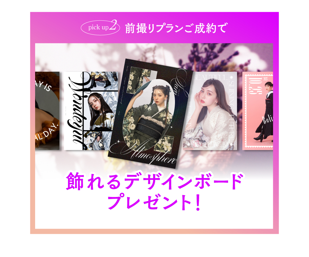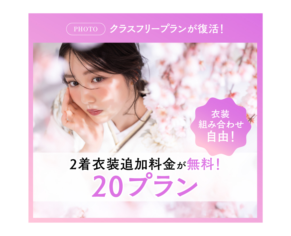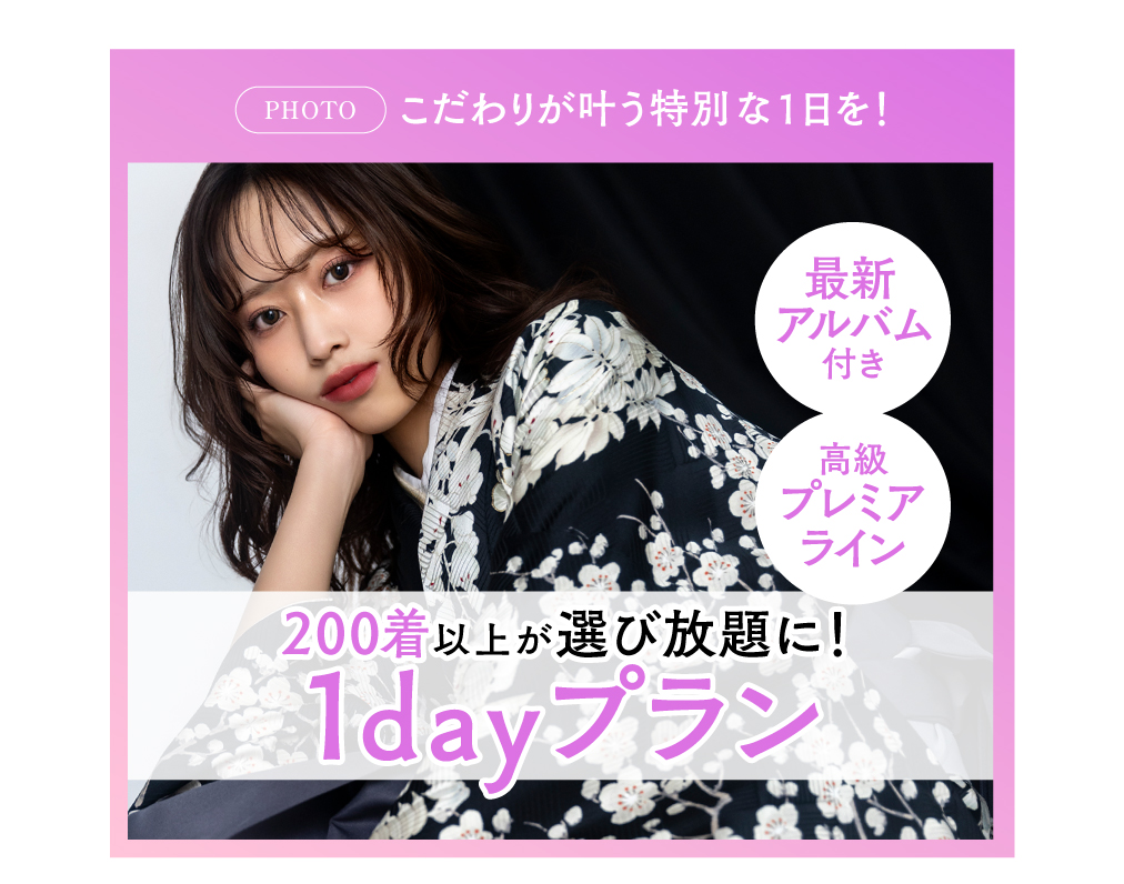 トップページ > 成人・卒業 > キャンペーン情報 【4月】成人写真前撮り・後撮り,卒業袴レンタルのお得なキャンペーン 【スタジオ撮影プラン】 ・データまるごとプラン、データ&アルバムプラン▶︎¥1,000分 ・20プラン▶︎¥3,000分 ・1dayプラン▶︎¥5,000分 【振袖レンタルプラン】 ・全プラン一律▶︎¥5,000分 ★NEWS! 高級&トレンド振袖ラインナップPremierLineスタート 撮影プラン スタジオ撮影 振袖レンタル 卒業袴レンタル メンズプラン ご予約・お問い合わせはこちら 撮影プラン レンタルプラン 卒業プラン メンズプラン キャンペーン 衣装ギャラリー フォトギャラリー 店舗の最新情報