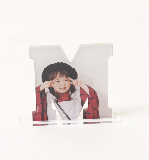 三景スタジオ旭川本店で大人気のイニシャルフォトブロックは、思い出の写真を閉じ込めるアクリル製のフォトスタンドです。