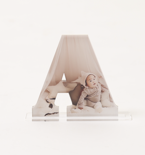 お好きなアルファベットの形に、とびきり可愛いベビーフォトをデザインします。