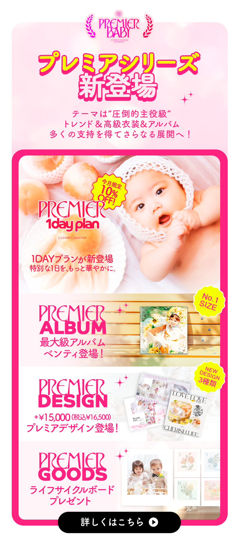 【ベビープレミア】最高級&トレンド衣装ライン&アルバム『premier Series』がスタート!一生残る『今』だから。世界で一番愛おしい、あなたへの贈りもの。