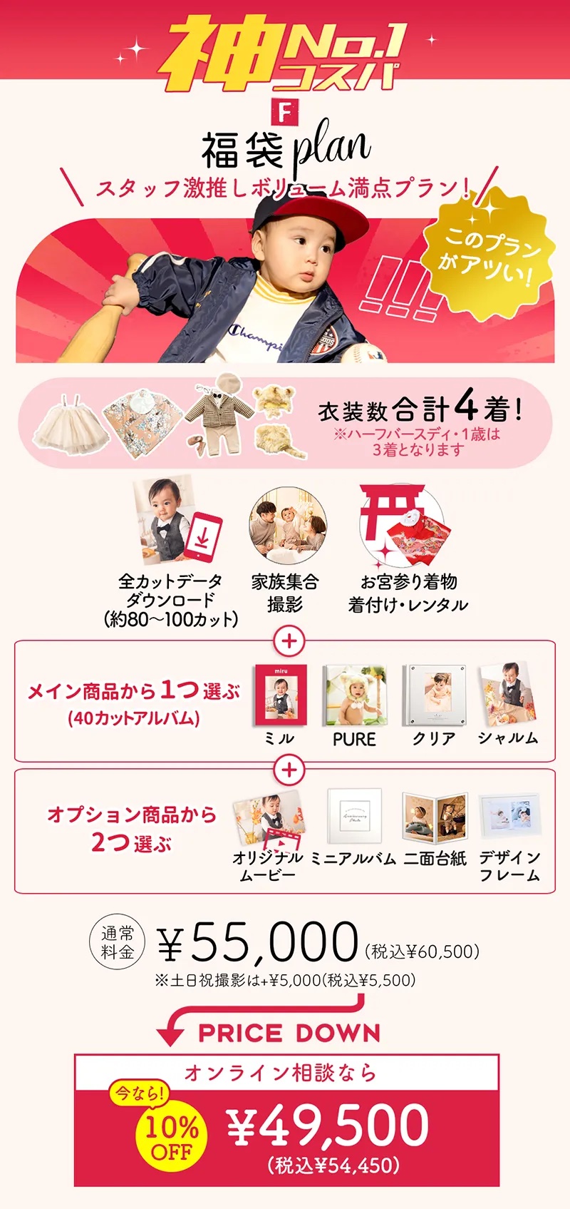 そんな「今」しかない愛おしい姿を、最高のかたちで残してほしい……。そんな思いから、今回はスタッフが自信を持っておすすめする、ボリューム満点の「福袋プラン」の魅力をたっぷりお伝えします。