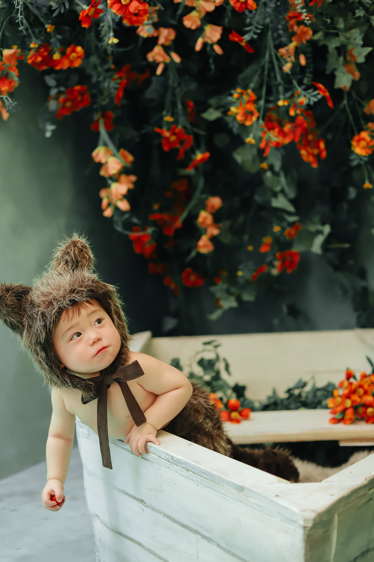 三景スタジオ旭川本店では、トレンドを取り入れたおしゃれな和装から、海外の子供部屋のような洋装まで豊富に取り揃えています。また、ベビー専門のスタッフがお子さまのペースに合わせて「遊びながら」撮影するので、自然な笑顔を引き出すことができます。