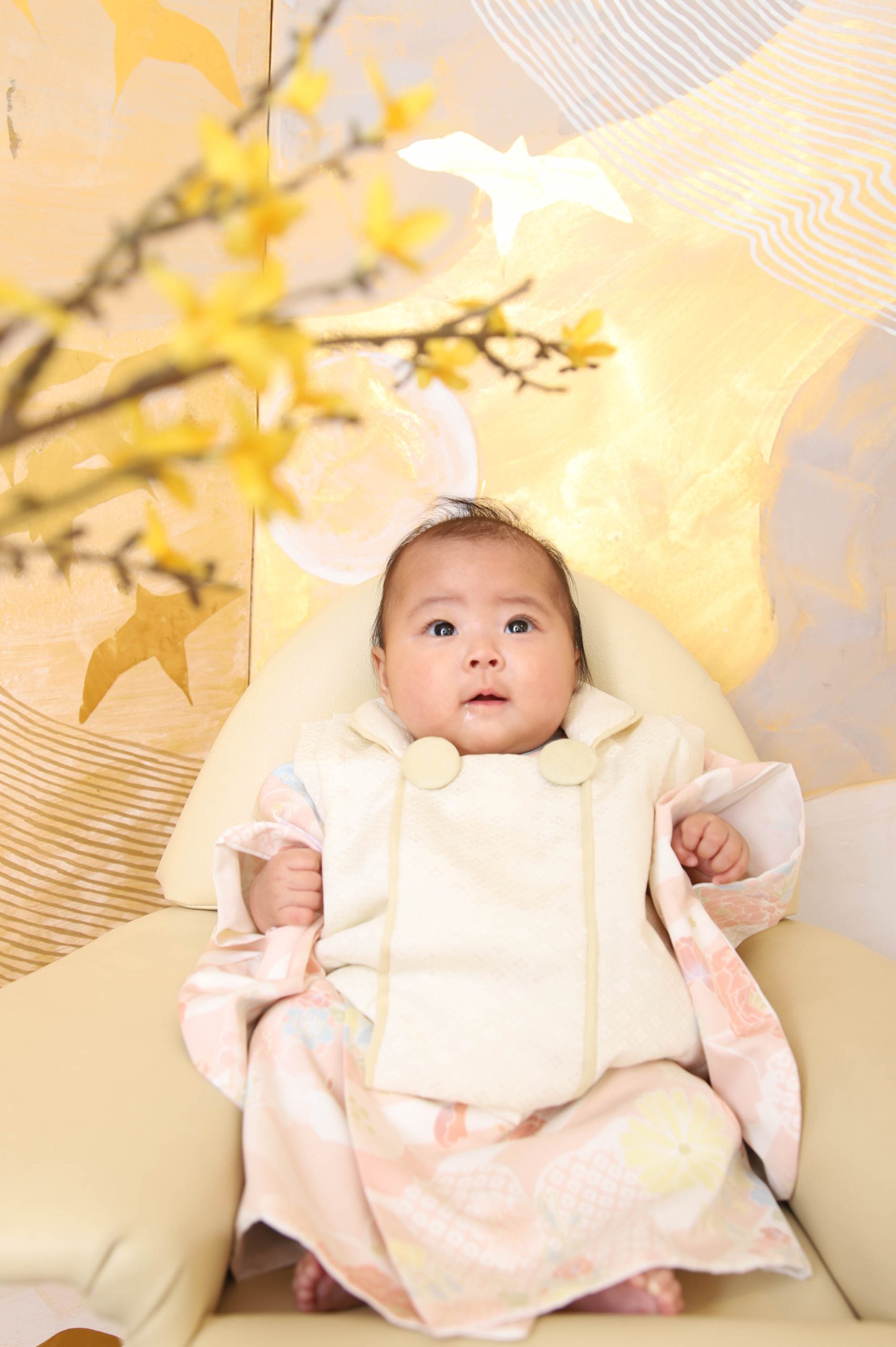 百日記念の時よりも首や腰がしっかりしてくるため、得意げな「うつ伏せ」ポーズや、支えありの「お座り」など、バリエーション豊かな姿を残せます。