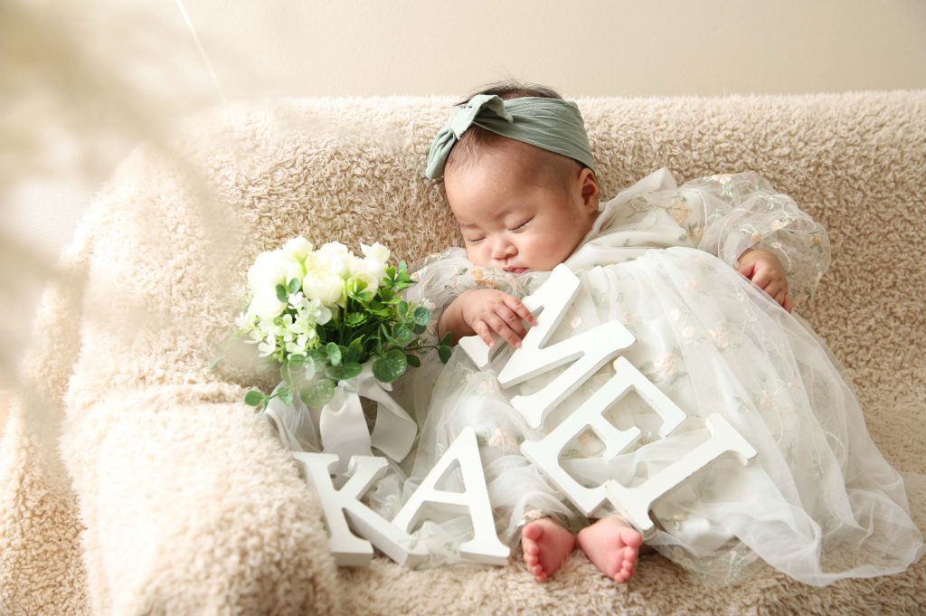 三景スタジオのお客様紹介!!百日記念♡かわいい『めいかちゃん』ねちゃったよ♡