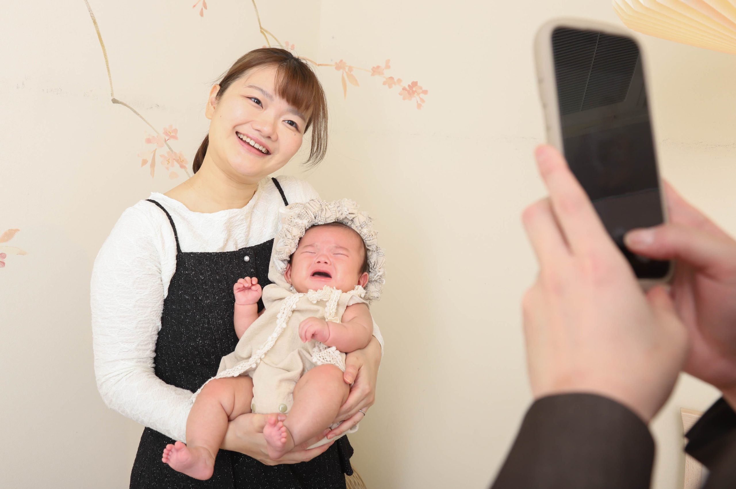 当スタジオでは、万が一お子様が泣いてしまっても「再撮影1回無料」の保証があるので、リラックスして撮影に臨んでいただけますよ。