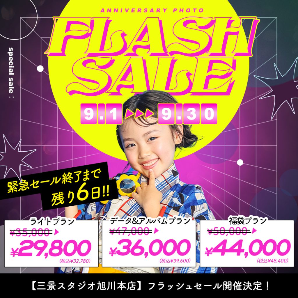 電撃プライス!”フラッシュセール”開催【9/1〜9/30】 / ベビーキッズ全種目記念撮影対象!