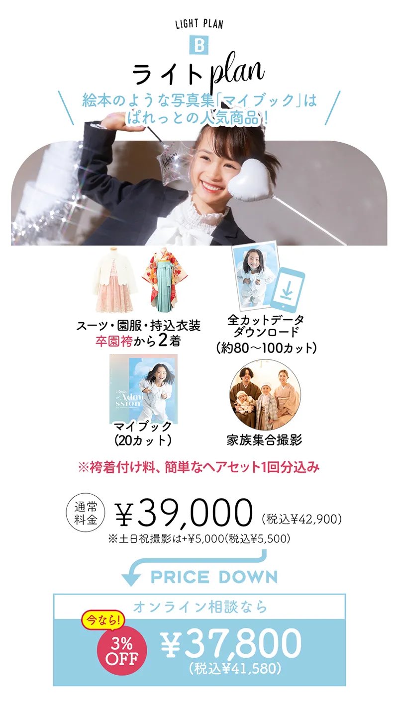 「入学だけ」「七五三だけ」と決まっているなら、それぞれのライトプランが◎。