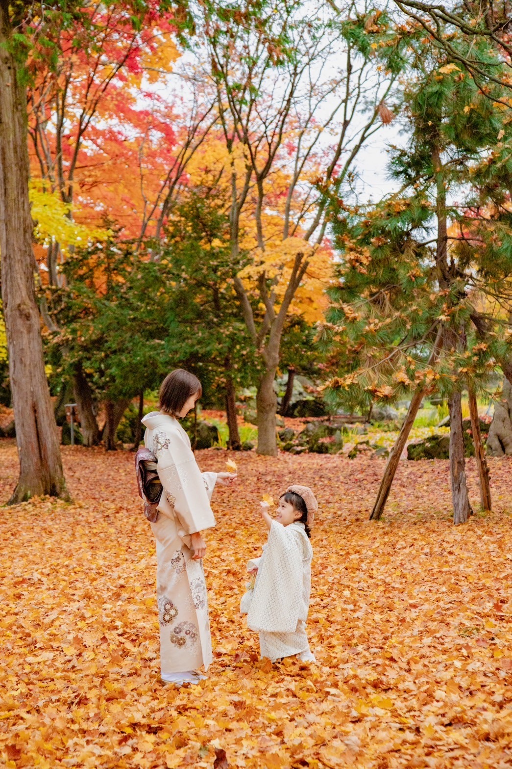パパとママが和装でお子様に寄り添う姿は、写真としての完成度がぐっと高まるだけでなく、お子様にとっても「今日はパパとママも一緒にお着物を着ている!」という、いつもとは違う特別なワクワク感につながります。