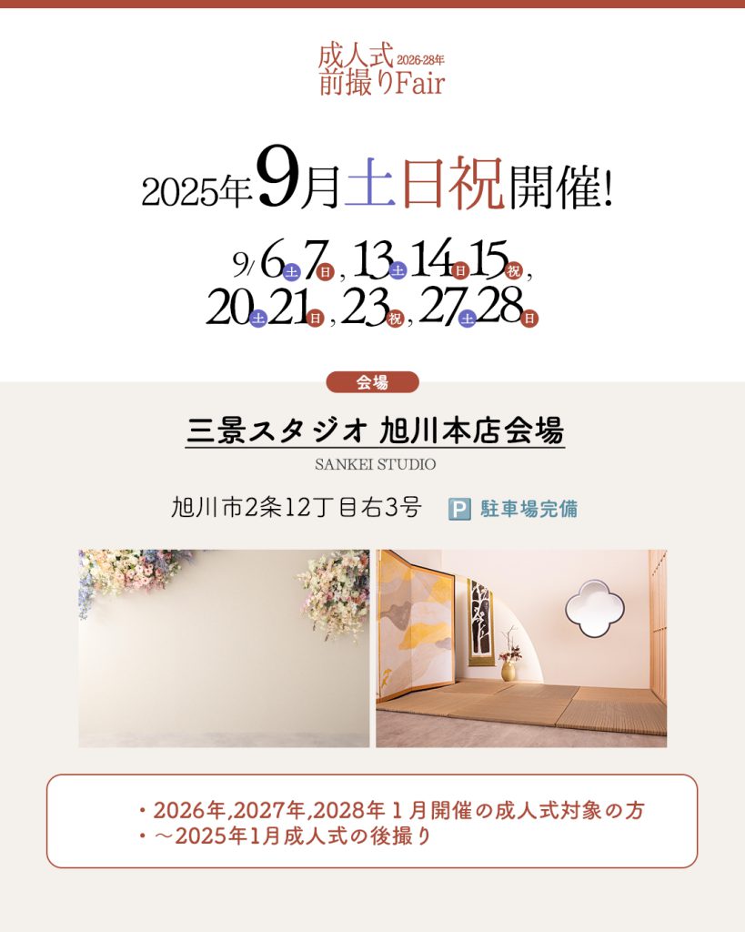 9月も残りわずかですが土日祝日は「振袖前撮り会」を開催しております♡