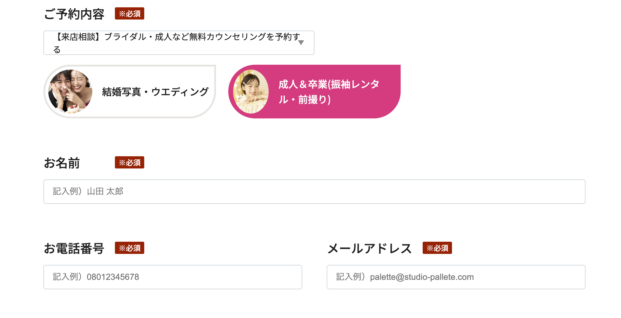 ①公式HPのご予約フォームから