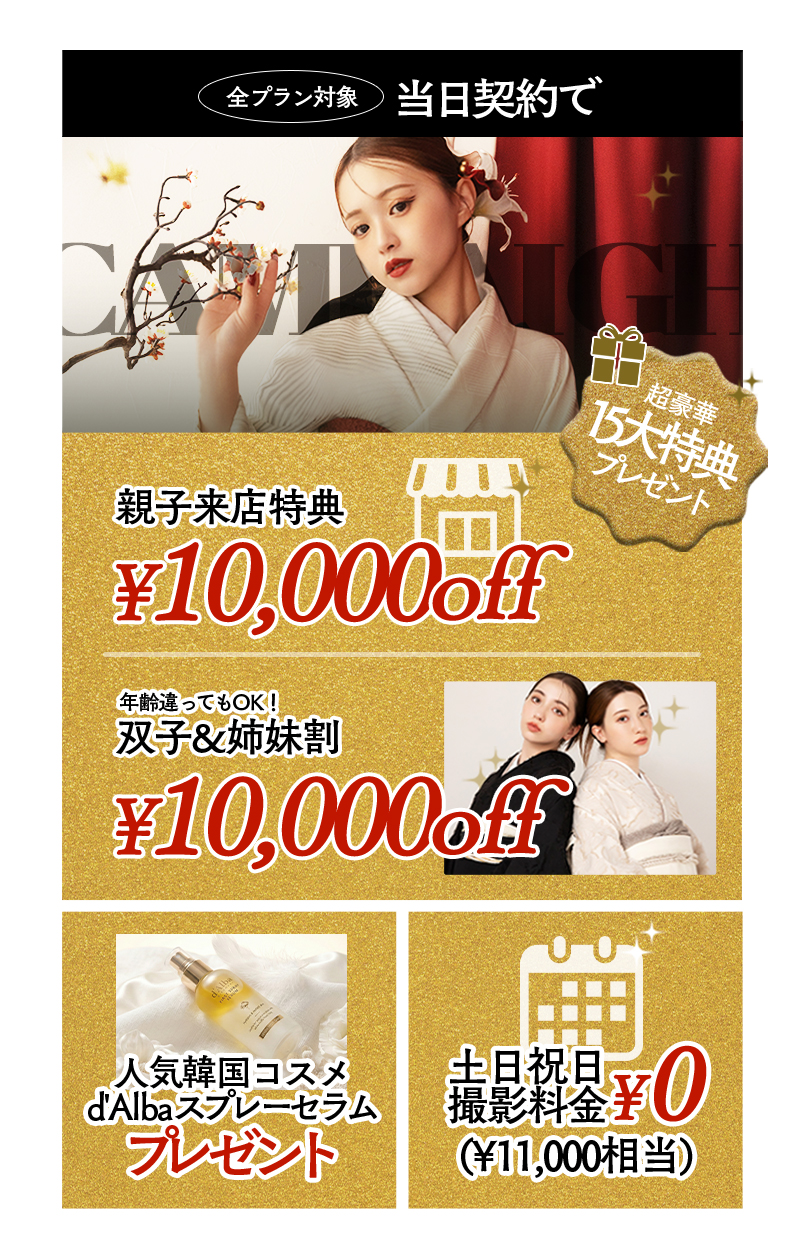 さらに!お母様やお父様とのご来店で1万円オフの特典も♪