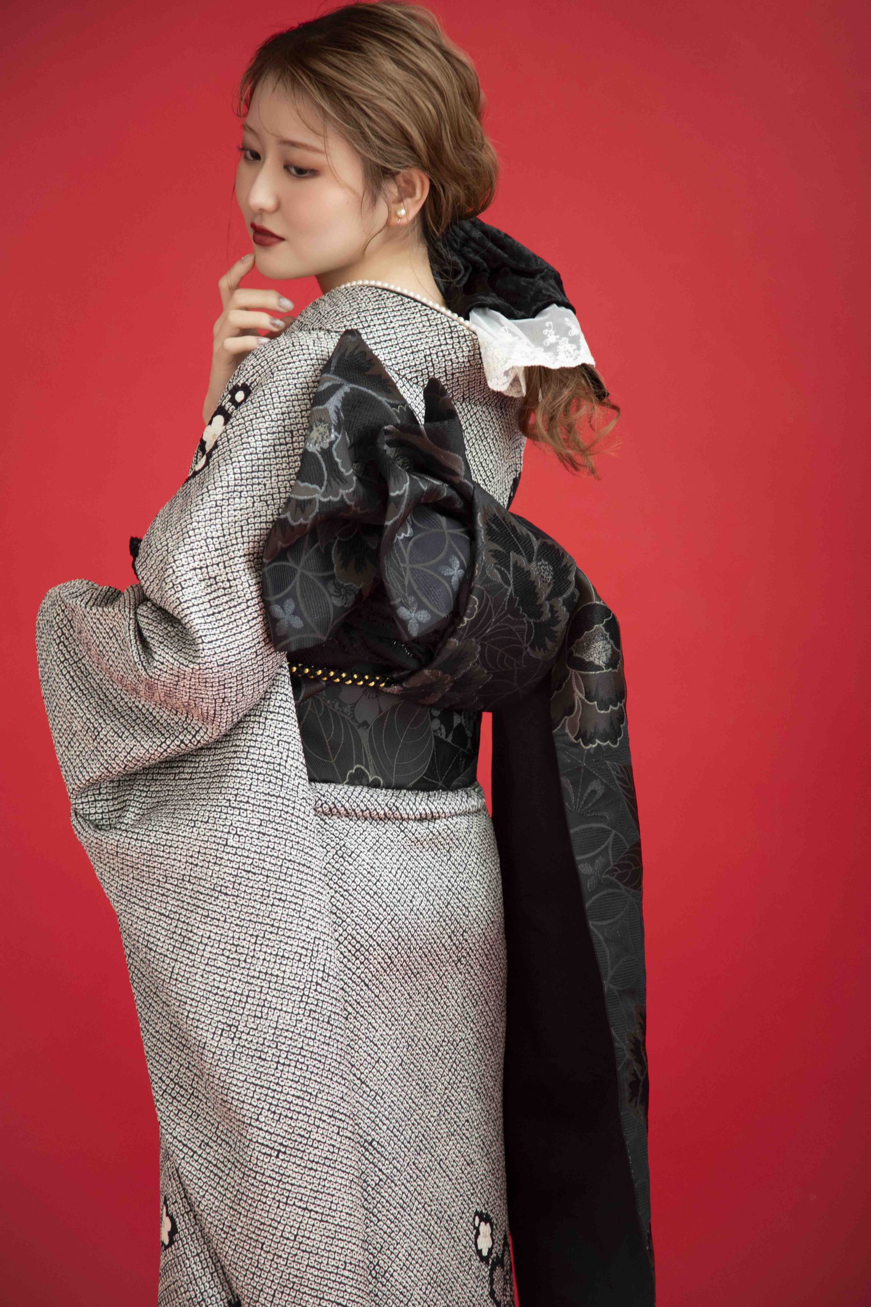 A: もちろんです!小物の色を変えるだけで、お母様の振袖をお嬢様のパーソナルカラーに寄せて、今っぽくアップデートすることが可能です。