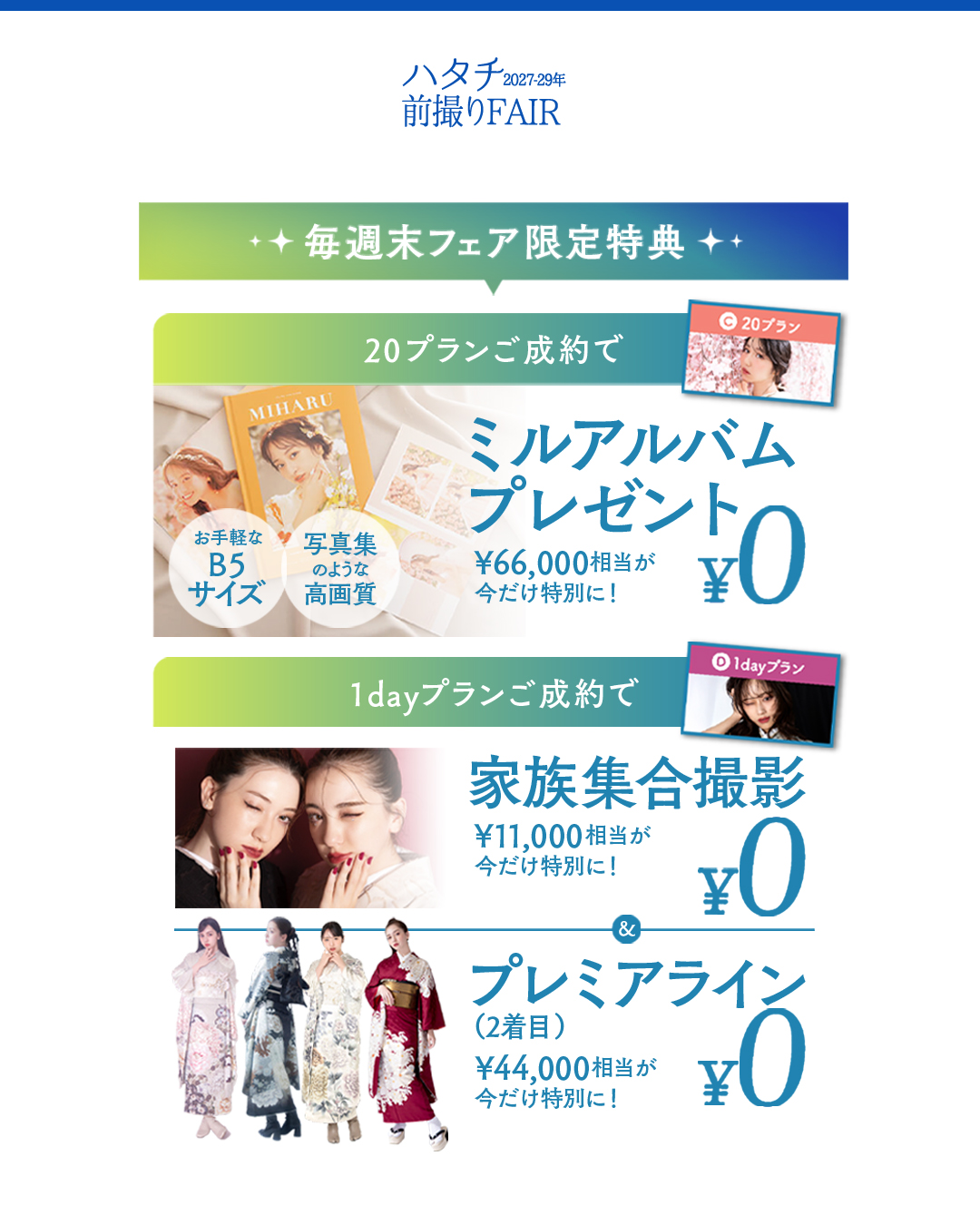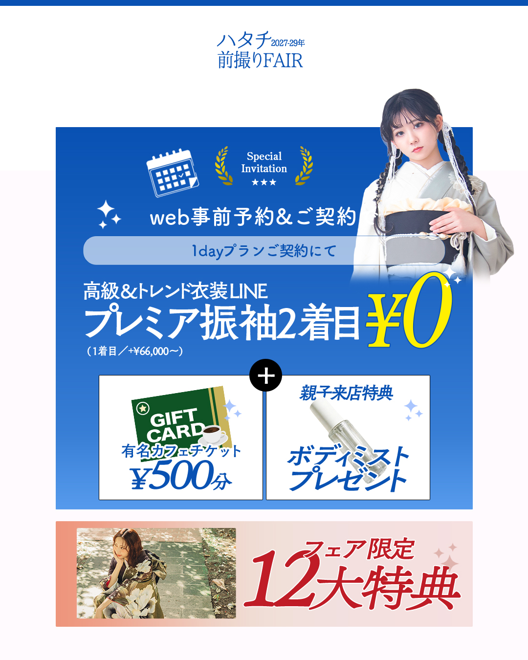 【5月6月/毎週金土日祝日 開催!前撮りフェア】振袖姿、一生の思い出に。