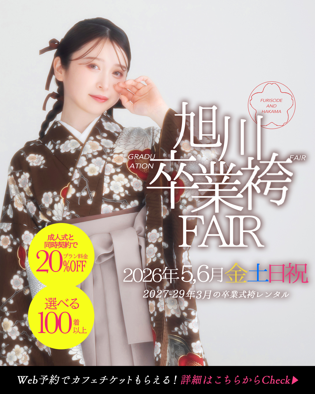 トップページ > 成人・卒業 > お得な情報 > 【5,6月 金土日祝】旭川卒業袴フェア開催!お待ちしております♪