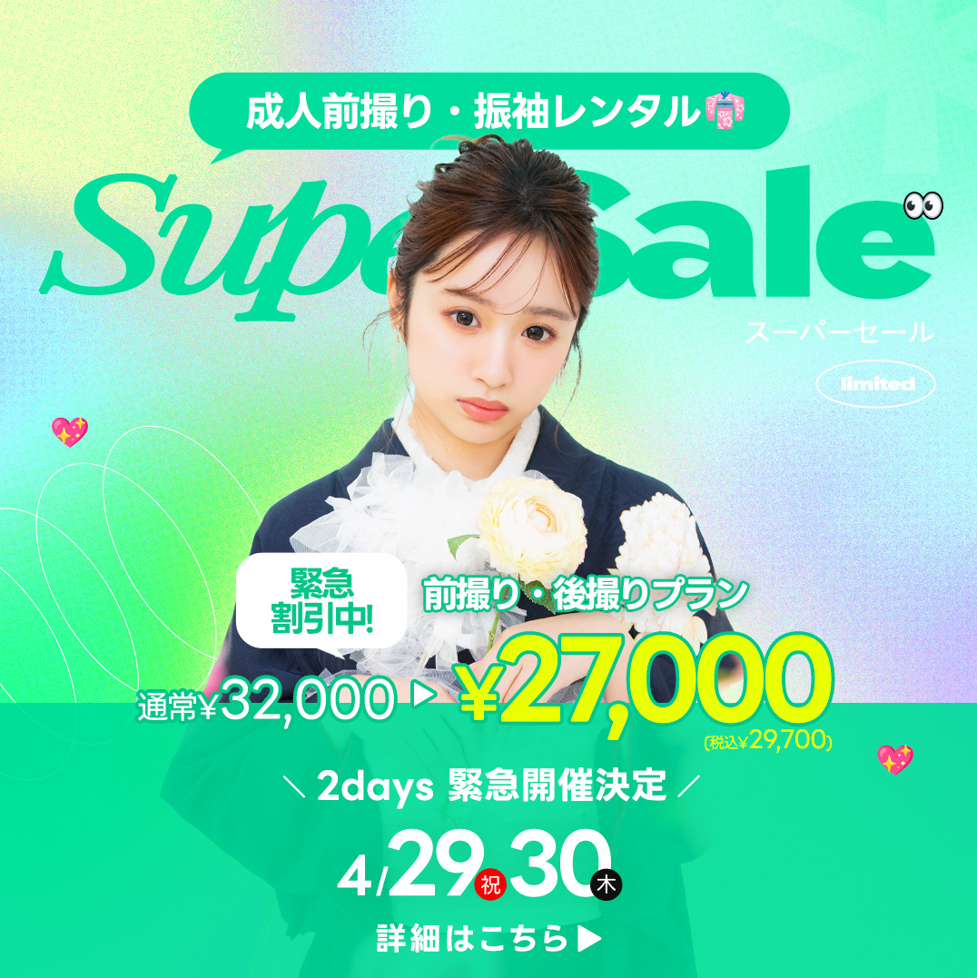 トップページ > 成人・卒業 > お得な情報 > 【三景スタジオ旭川本店】電撃プライス!成人振袖”スーパーセール”開催【4/29,4/30の2日間】