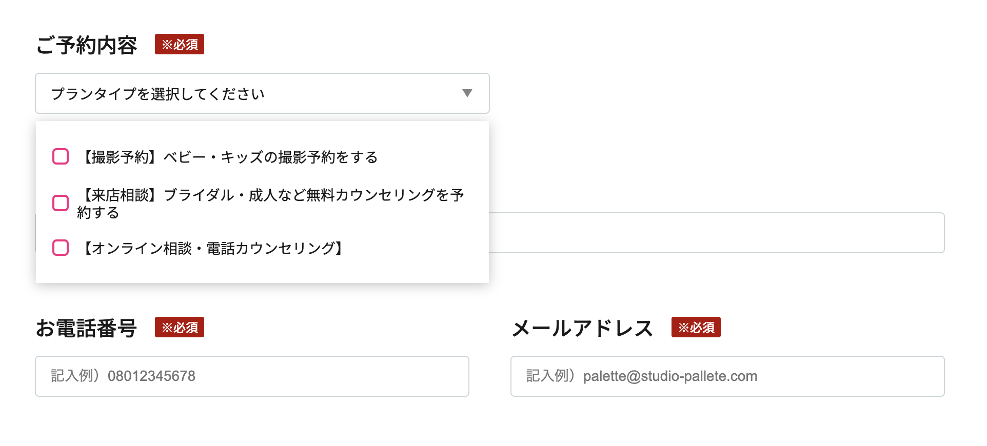 【ご予約内容】来店相談orオンライン相談・電話カウンセリング を選択