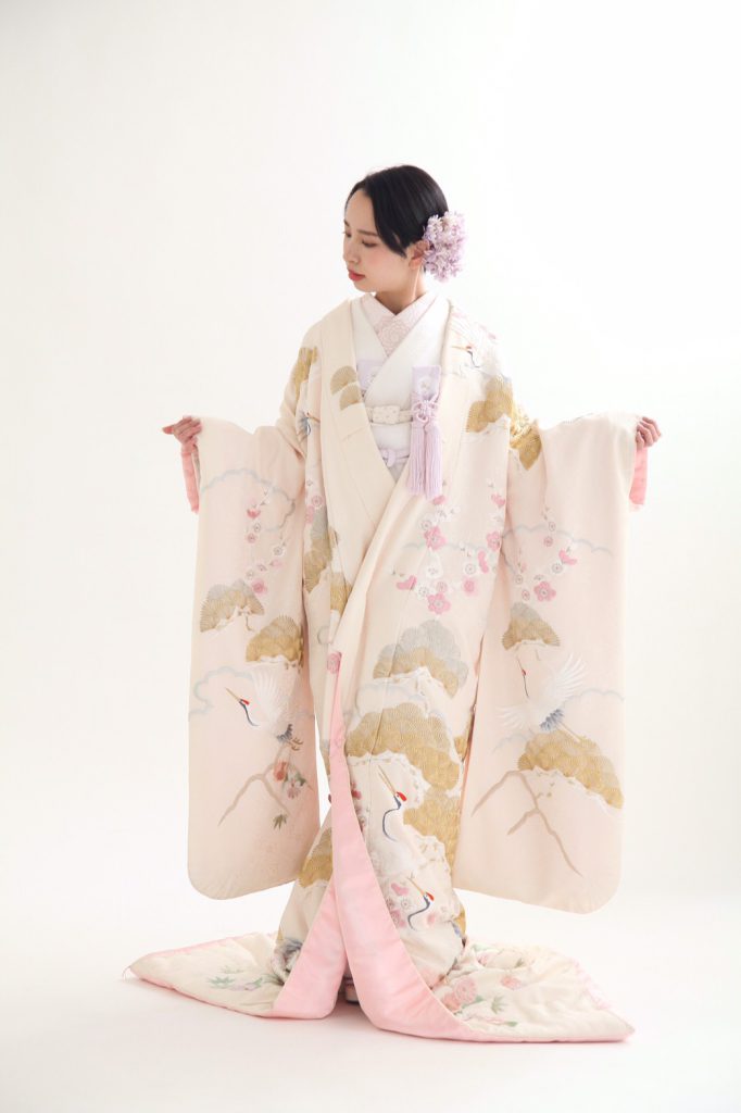 室町時代から続く最も格式高い婚礼衣裳であり、「嫁ぐ家のしきたりに染まる」という意味が込められています。
