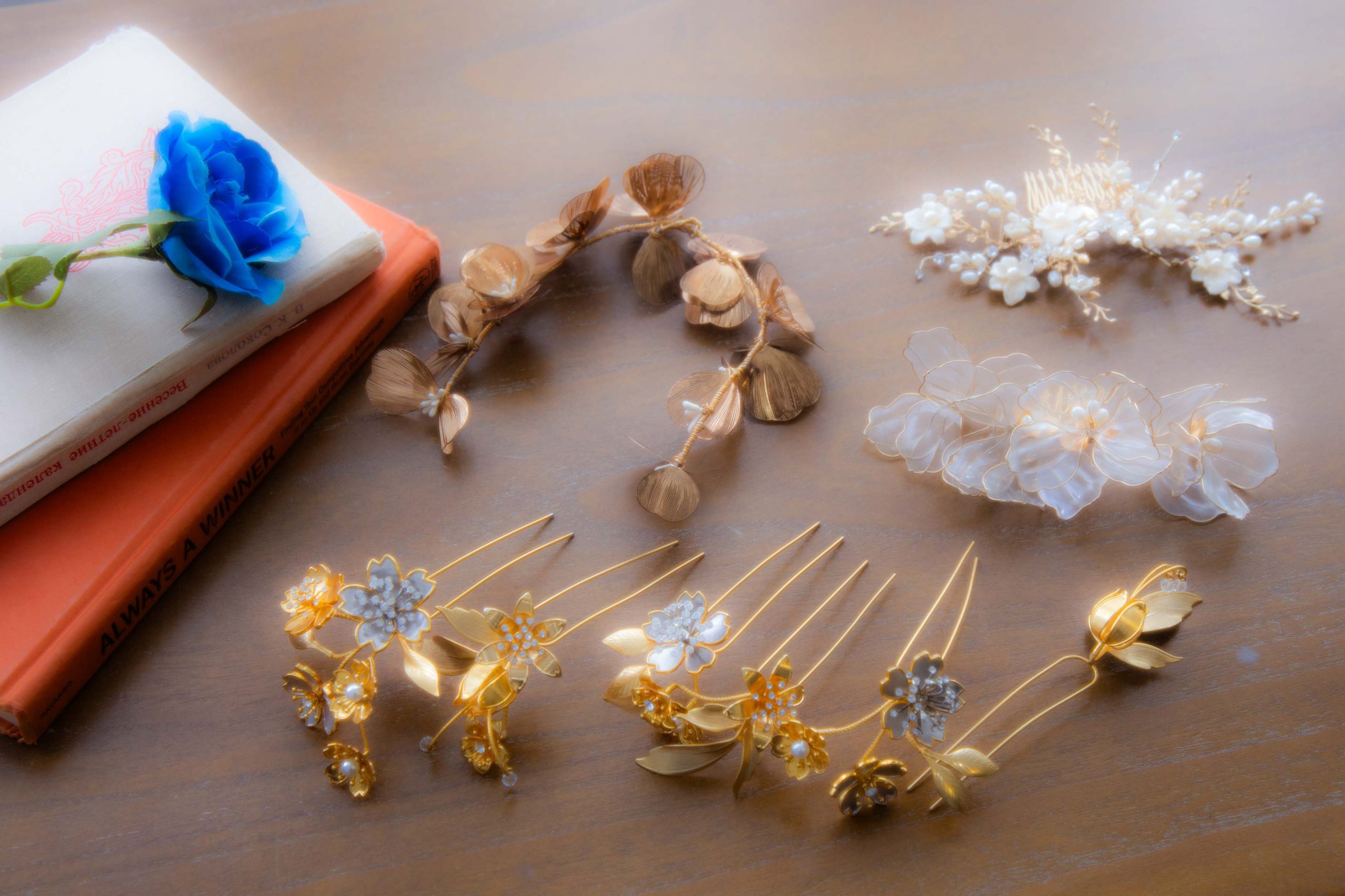 三景スタジオでは、高さのある華やかなデザインから、控えめで上品なカチューシャ風まで幅広く取り揃えております。
