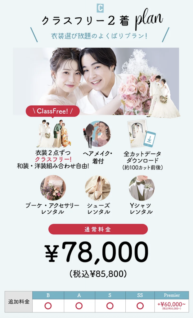 「金額を気にして好きなドレスを我慢したくない」という方は、クラスフリープランをご検討ください!!