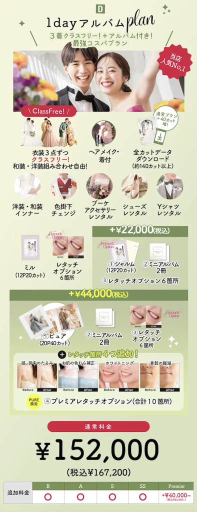1dayアルバム plan: 152,000円(税込167,200円)〜