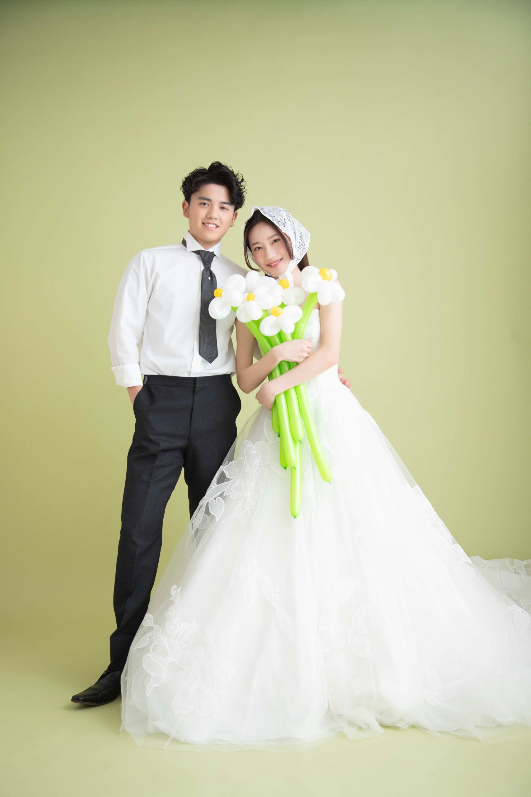 カメラを意識しすぎず、見つめあったり、悪戯っぽく頬に触れたり。お2人のいつもの距離感を大切に撮影します✨トレンドのバルーンフラワーや、繊細なレースのヘッドドレス。シンプルだけど、エッジの効いた小物が、韓国風の洗練