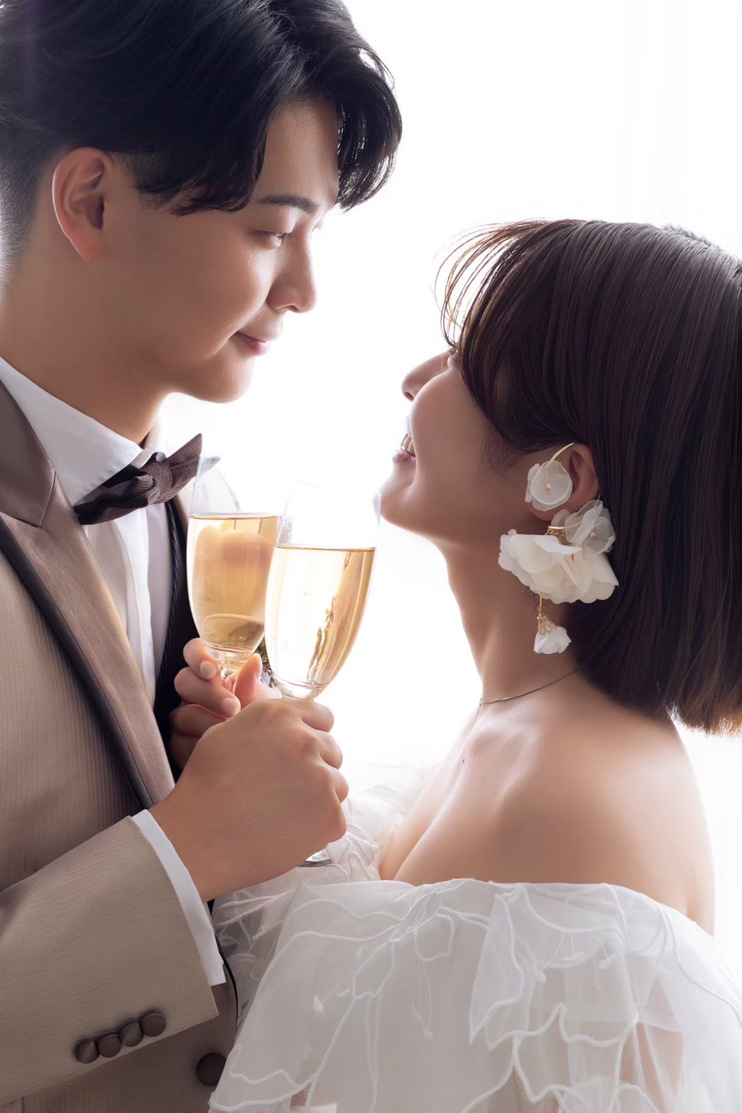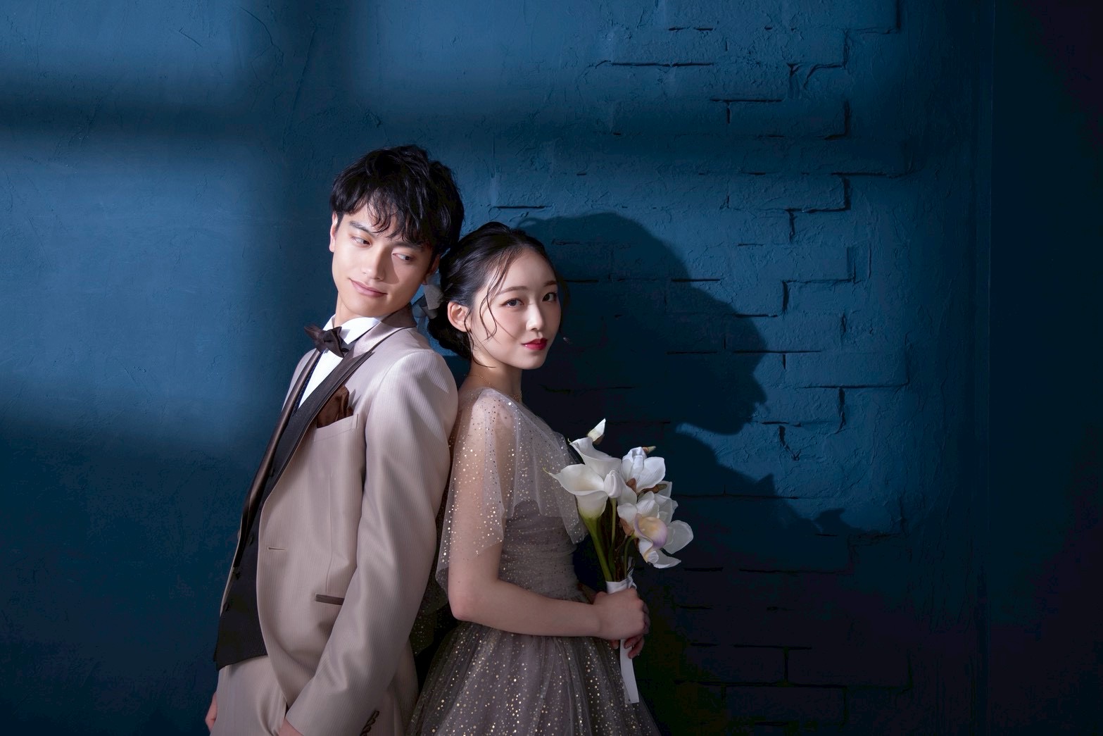スタジオ内の洗練されたセットで、トレンドのニュアンスカラーや上質なドレスを身に纏い、最高の瞬間を残しましょう 。