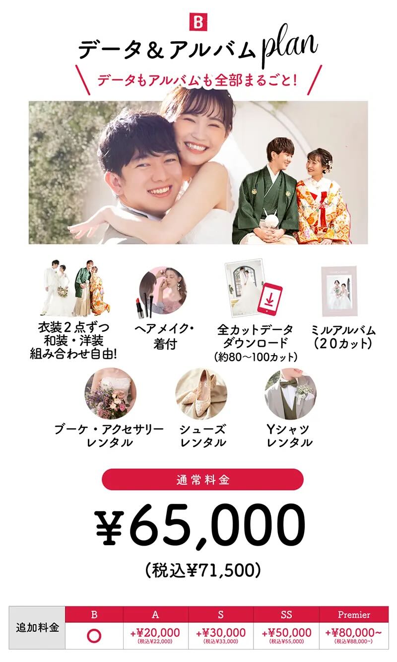 「まずは手軽に、でもしっかり残したい」というお二人にぴったりの、コストパフォーマンスに優れた内容です 。