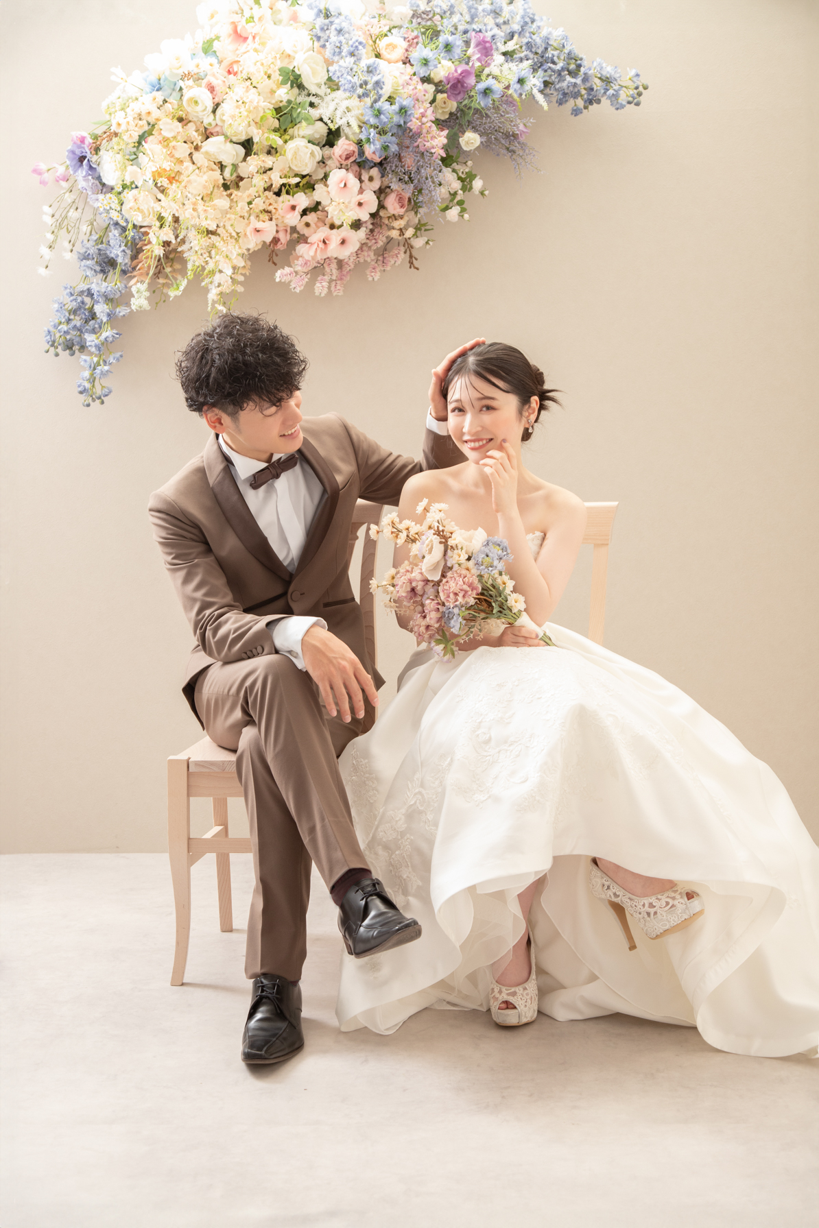 当スタジオのスタッフは、技術はもちろんのこと「お客様と一緒に楽しむ」ことを大切にしています。緊張しがちな新郎様も、撮影が終わる頃には自然な笑顔を見せてくださることが多いんですよ。