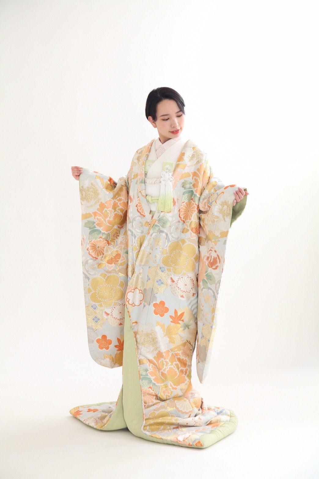 色打掛といえば「赤」や「金」が定番ですが、最近は「ニュアンスカラー」や「ワントーン」といった、少し抜け感のあるスタイルも非常に人気です 。