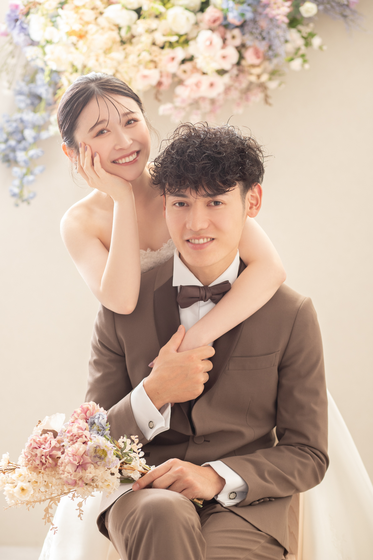 最近の20代カップルさまに人気なのは、式当日は着ない和装を「前撮り」で楽しんだり、逆に式は挙げずに「フォトウェディング」に予算をかけて豪華な衣装やアルバムを作ったりするスタイルです。 三景スタジオでは、どちらのニーズにもお応えできるよう、豊富なプランをご用意しています。当店の衣装コレクションには、王道のAラインドレスから、SNSで話題のテラコッタカラーのドレス、職人技が光る白無垢まで幅広く取り揃えており、どのような形式でも「最高の自分」を演出できます。