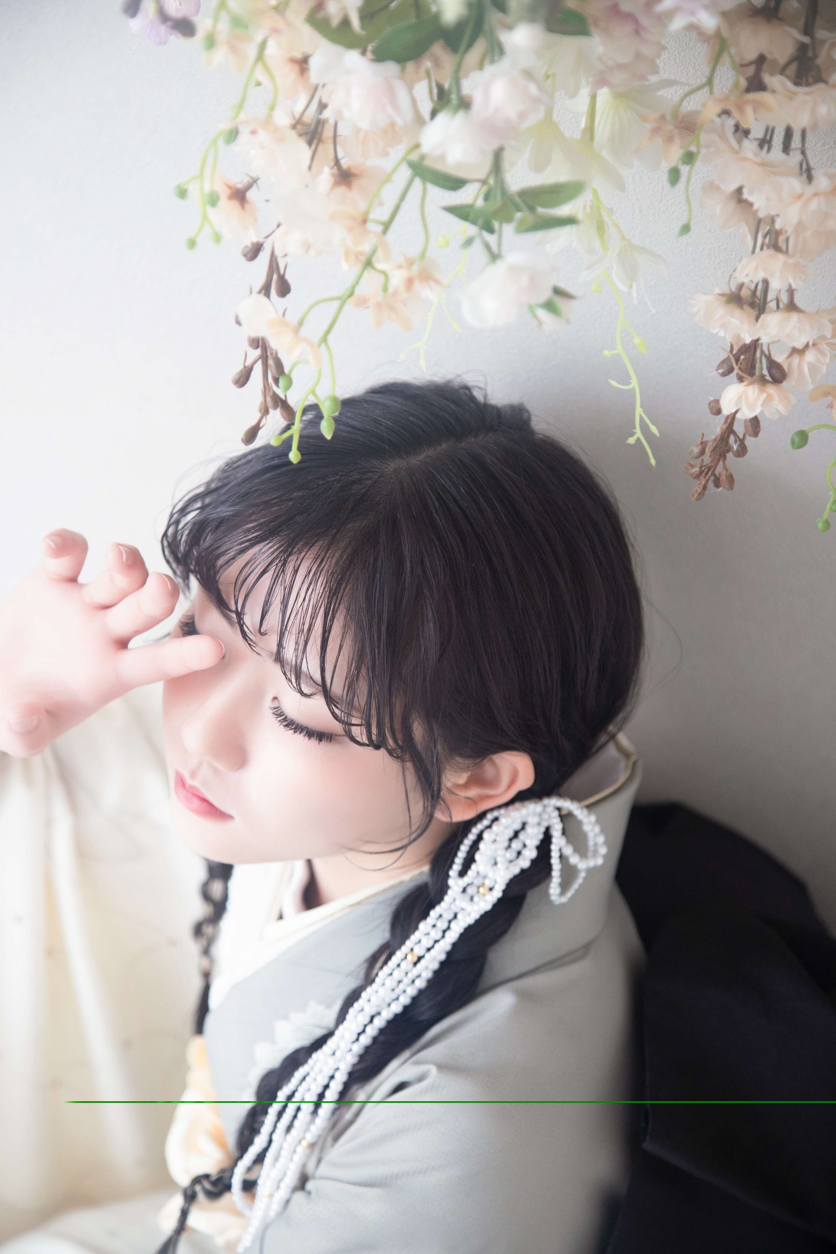 柔らかな自然光が差し込むようなホワイトベースの背景は、どんな衣装にも馴染む万能なスタイルです。