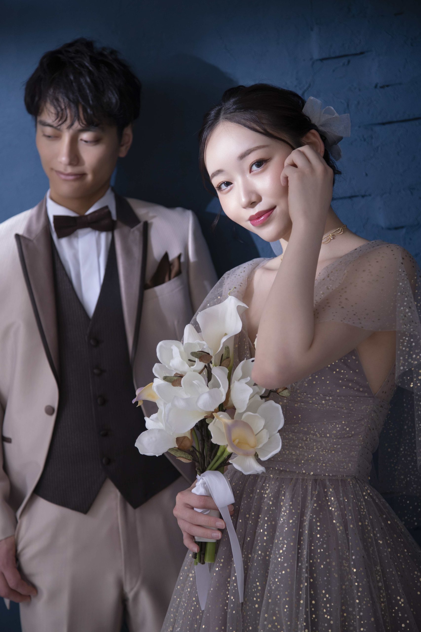 背景をあえてシンプルにすることで、主役であるお二人の表情や、選んだ衣装のディテールがより一層際立ちます。