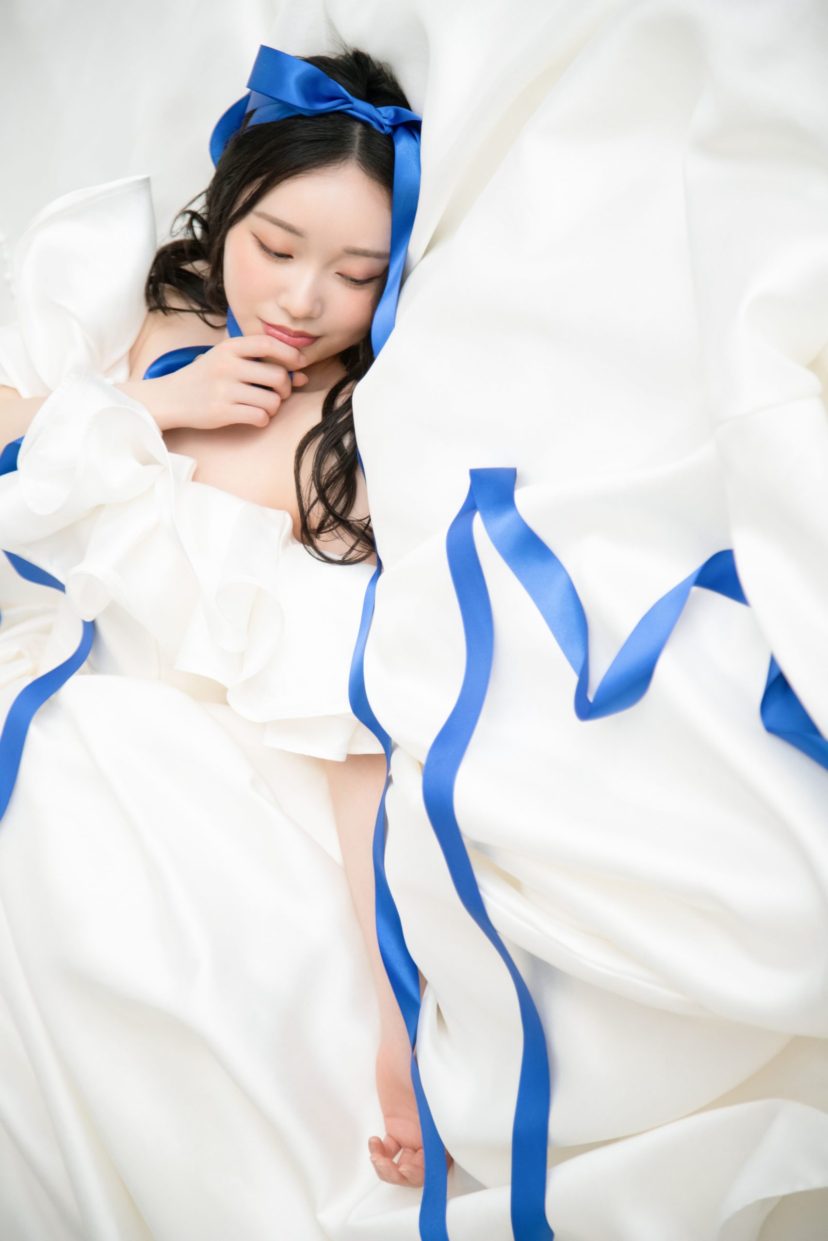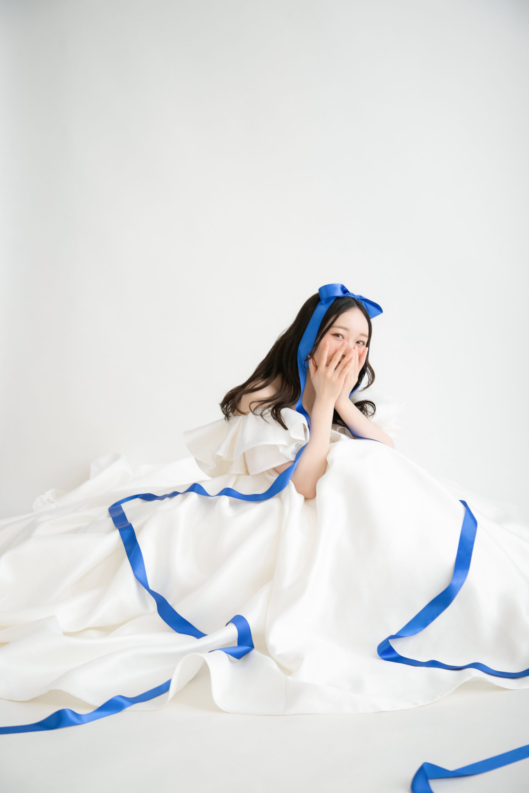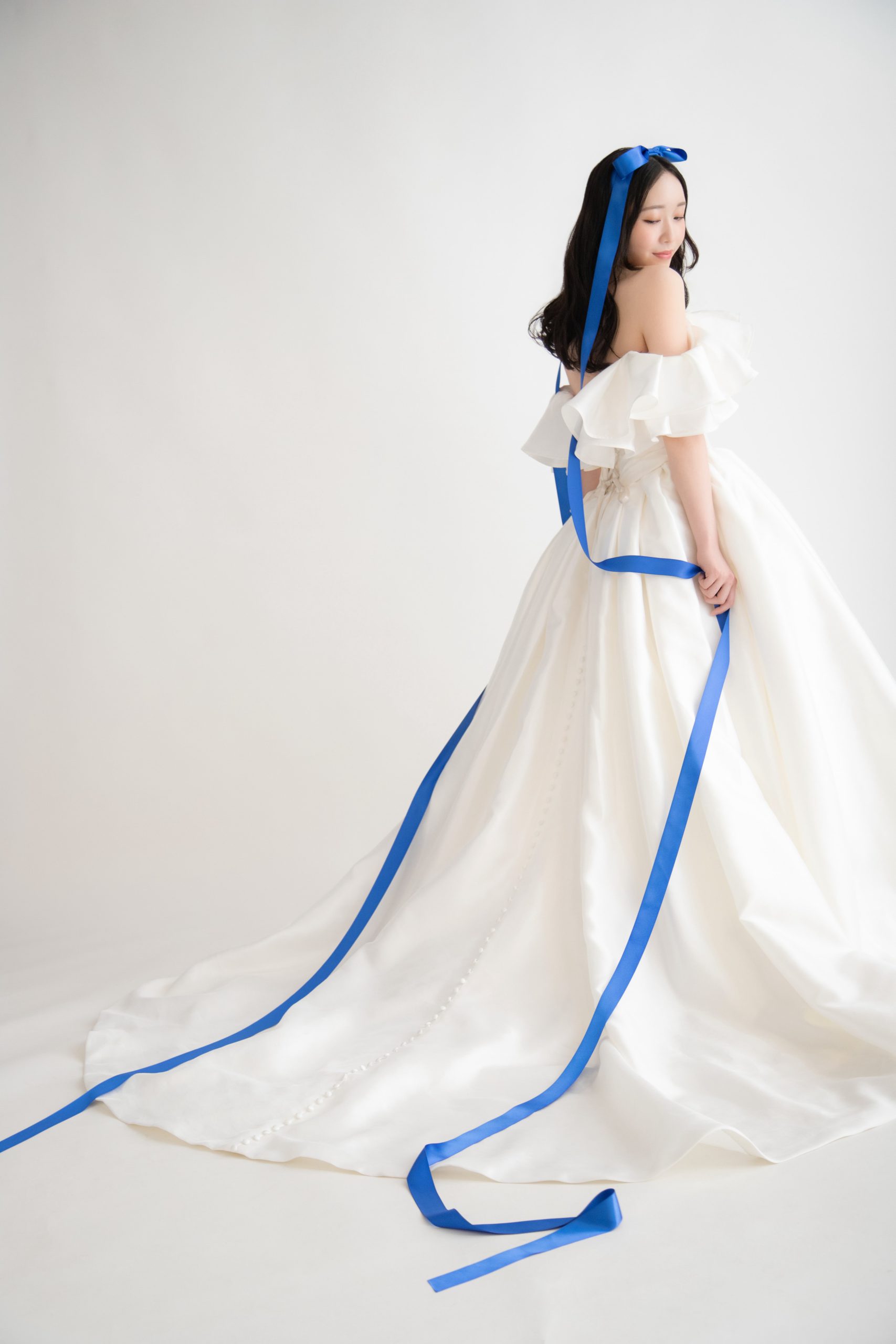 コンセプトは「最高のギフトボックスを開けた瞬間」です。 プレゼントの箱を開けるときの、あの胸が高鳴るワクワク感をソロウェディングで表現しました。真っ白なドレスに鮮やかなブルーのリボンを添えて、あなた自身を可愛らしくラッピング。自分を特別なギフトに見立てて、今の輝きをぎゅっと閉じ込める……そんな遊び心と多幸感にあふれたスタイルです。